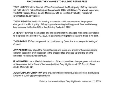 Notice of Public Meeting to Consider the Changes to Building Permit Fees